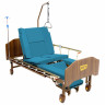 Медицинская кровать Интегра для домашнего ухода, снабжённая механическими регулировками положения четырёхсекционного ложа, функцией переворота* и оригинально реализованной функцией кардио-кресло, представляющей из себя не только статичное полулежачее положение для бодрствования и терапии кардио-заболеваний, но и независимо выдвигающуюся из торца кровати, оборудованную санитарным устройством каталку для перемещения больного с помощью осуществляющего уход человека.